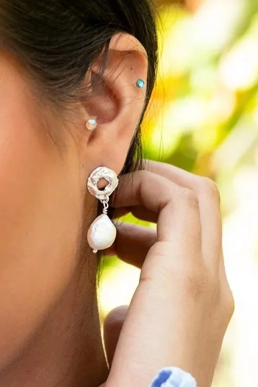 Each piece is crafted using recycled silver, with subtle textures and forms that make every design slightly unique.