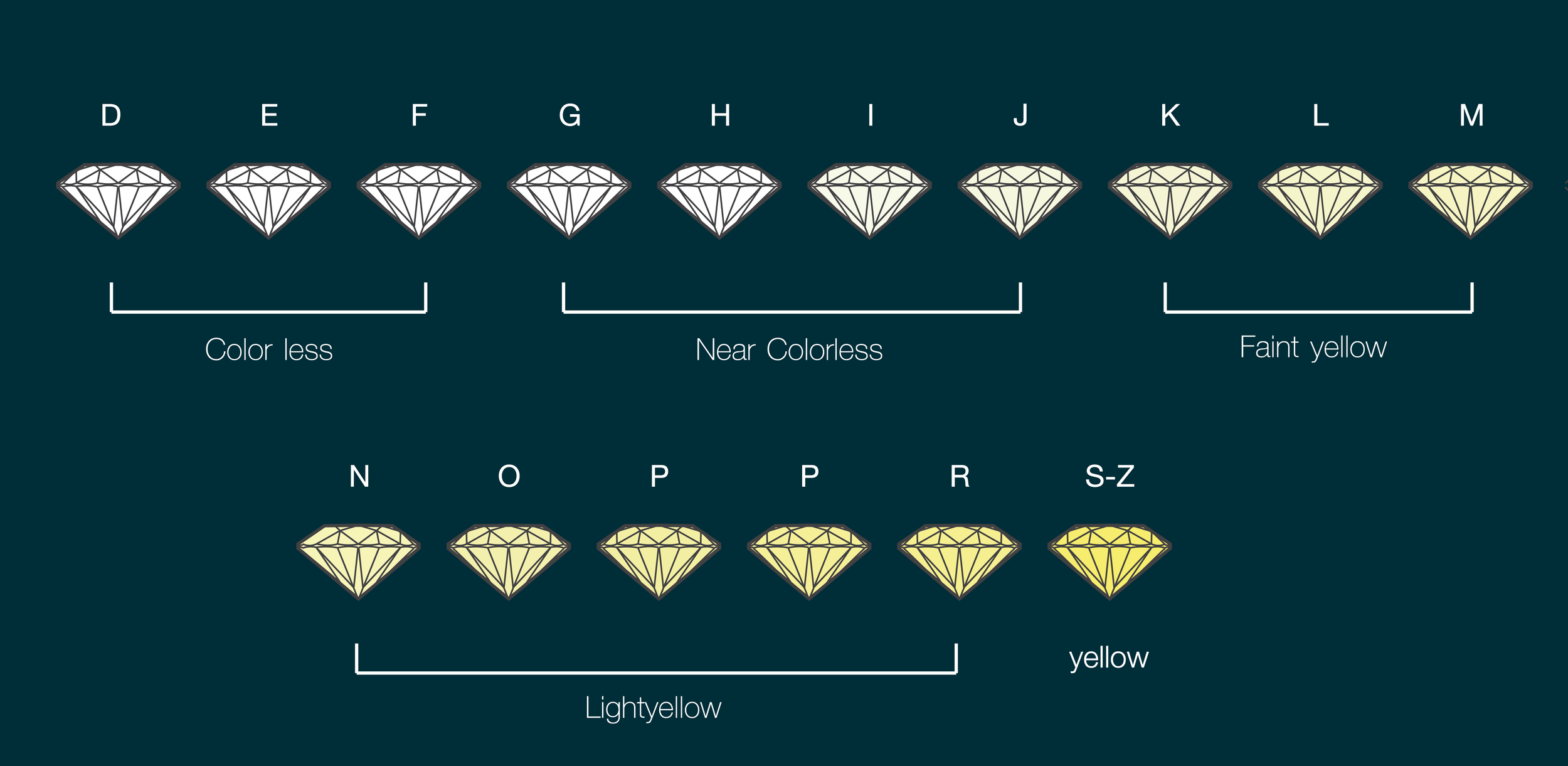 A diamonds colour is graded from D (colourless - the most valuable) to Z (heavily tinted). I use diamonds of a G colour.